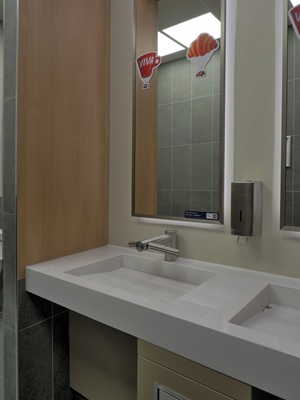 stěn a vstup na toalety, kde nechybí oddělená zařízení pro dámy,