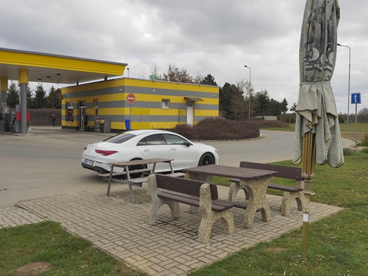 čerpací stanici pochopitelně není.