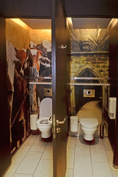 Nedaleko prostoru k občerstvení jsou umístěné toalety podle