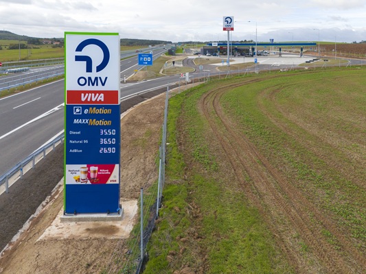 s novou dálnicí otevřena čerpací stanice OMV. Vedle toho zde