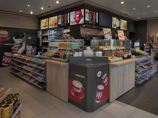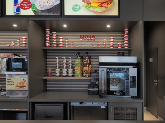 interiér kiosku a podle nové firemní identity se měnily atiky a