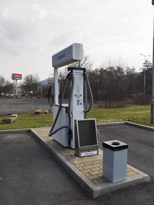 dohustit pneumatiky. Čerpací stanice akceptuje vedle