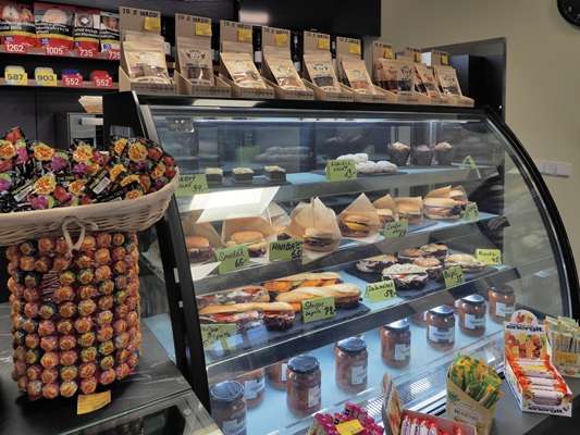 vitríně u pokladny pak zákazníci najdou sladké pečivo, obložené